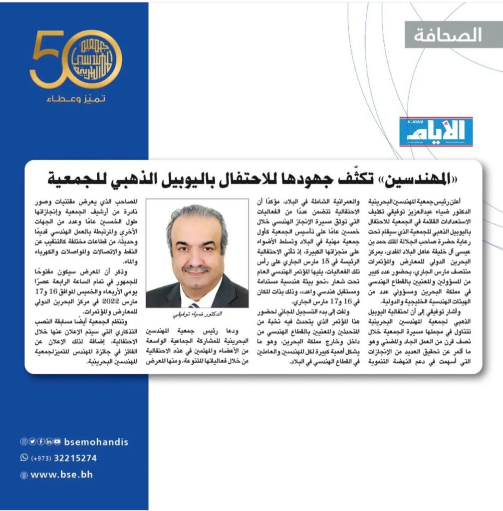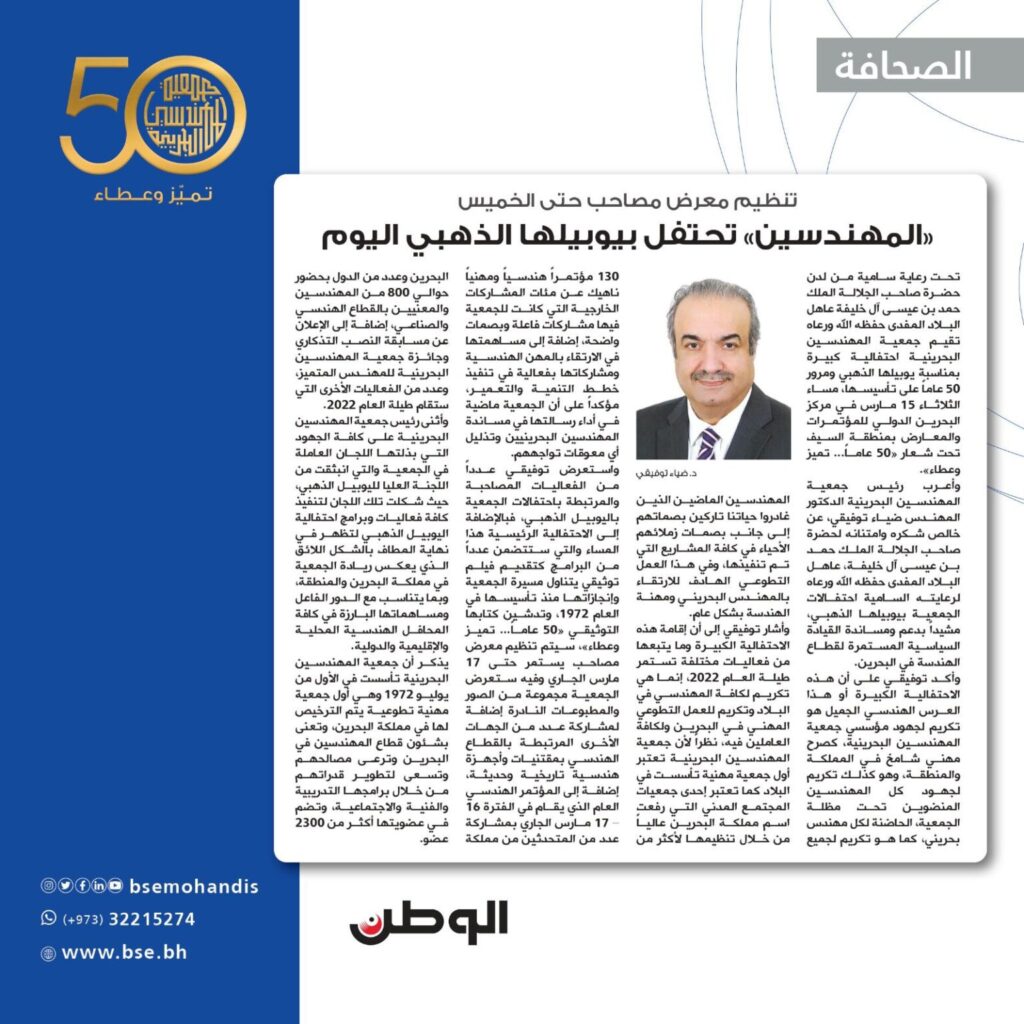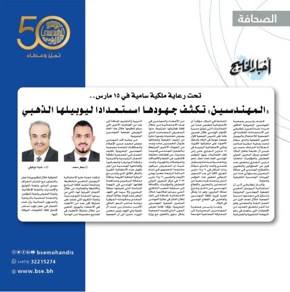 جمعية المهندسين البحرينية | الجمعية الوطنية الرائدة للمهندسين في مملكة البحرين.
