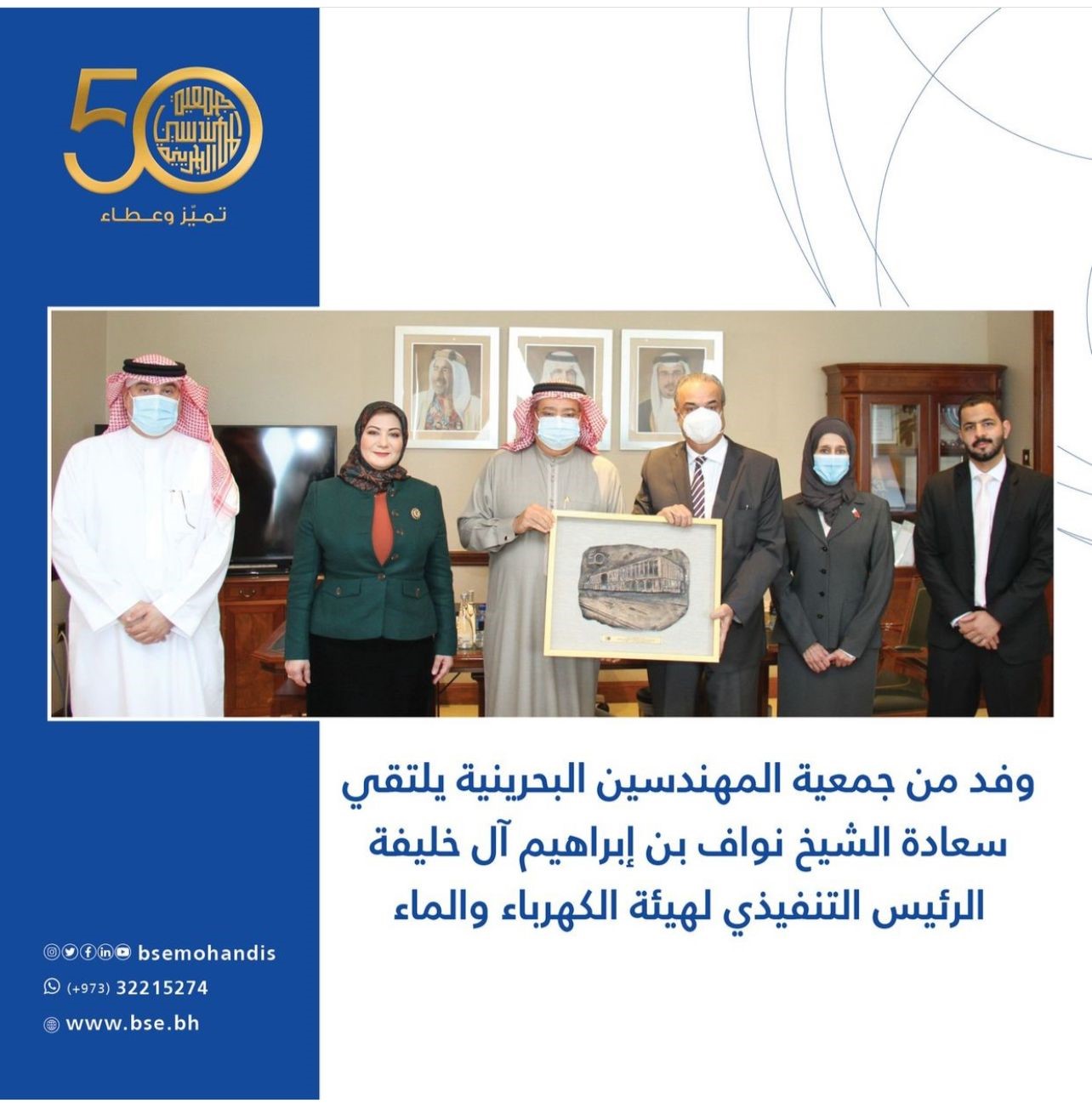 وفد من جمعية المهندسين البحرينية يلتقي سعادة الشيخ نواف بن إبراهيم آل خيلفة الرئيس التنفيذي لهيئة الكهرباء والماء